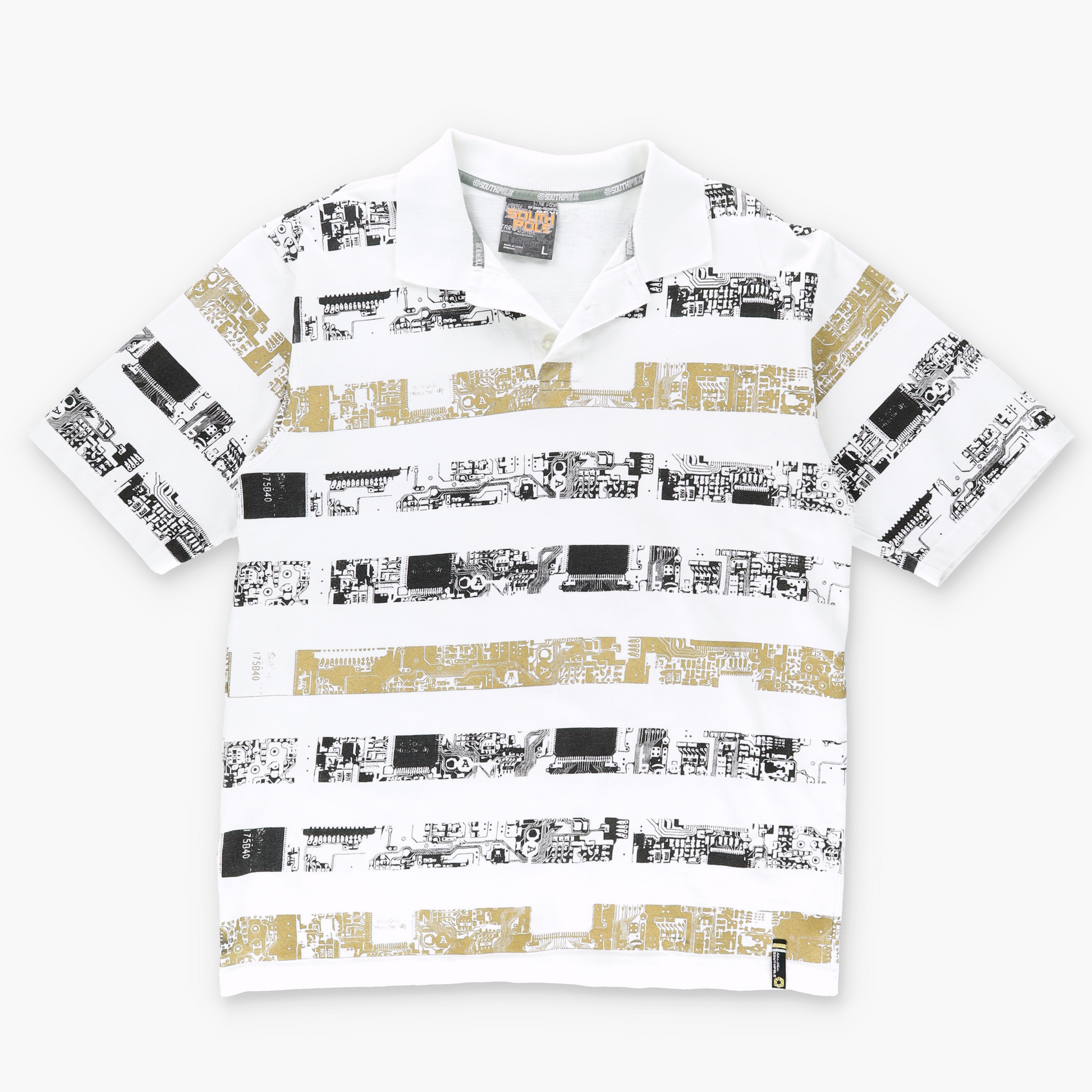 SOUTH POLE Y2K 'Star Voyage' Tech Print White & Gold Polo Tee (L)