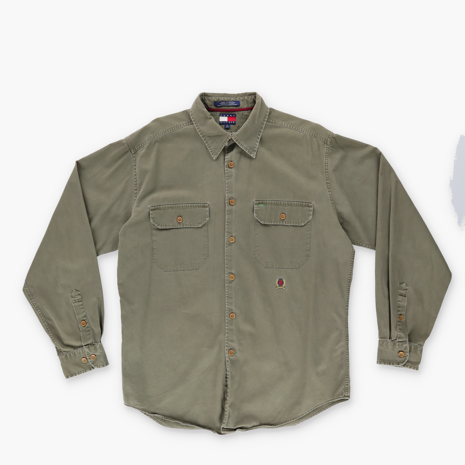 TOMMY HILFIGER Double Pocket Khaki Green Button Up Long Sleeve Shirt (L)