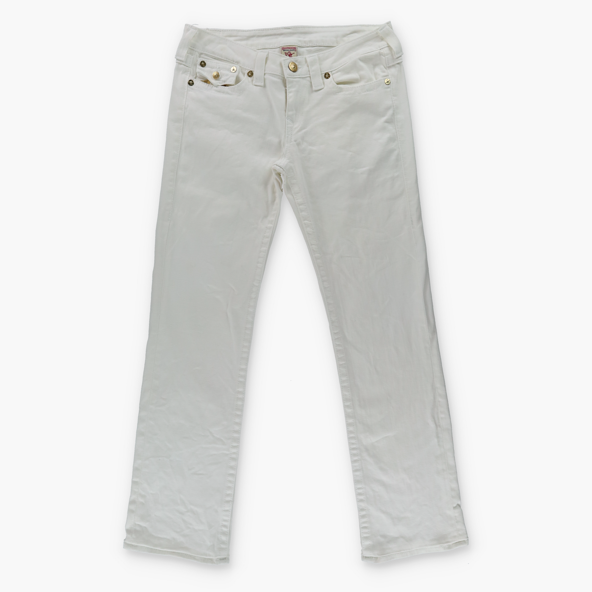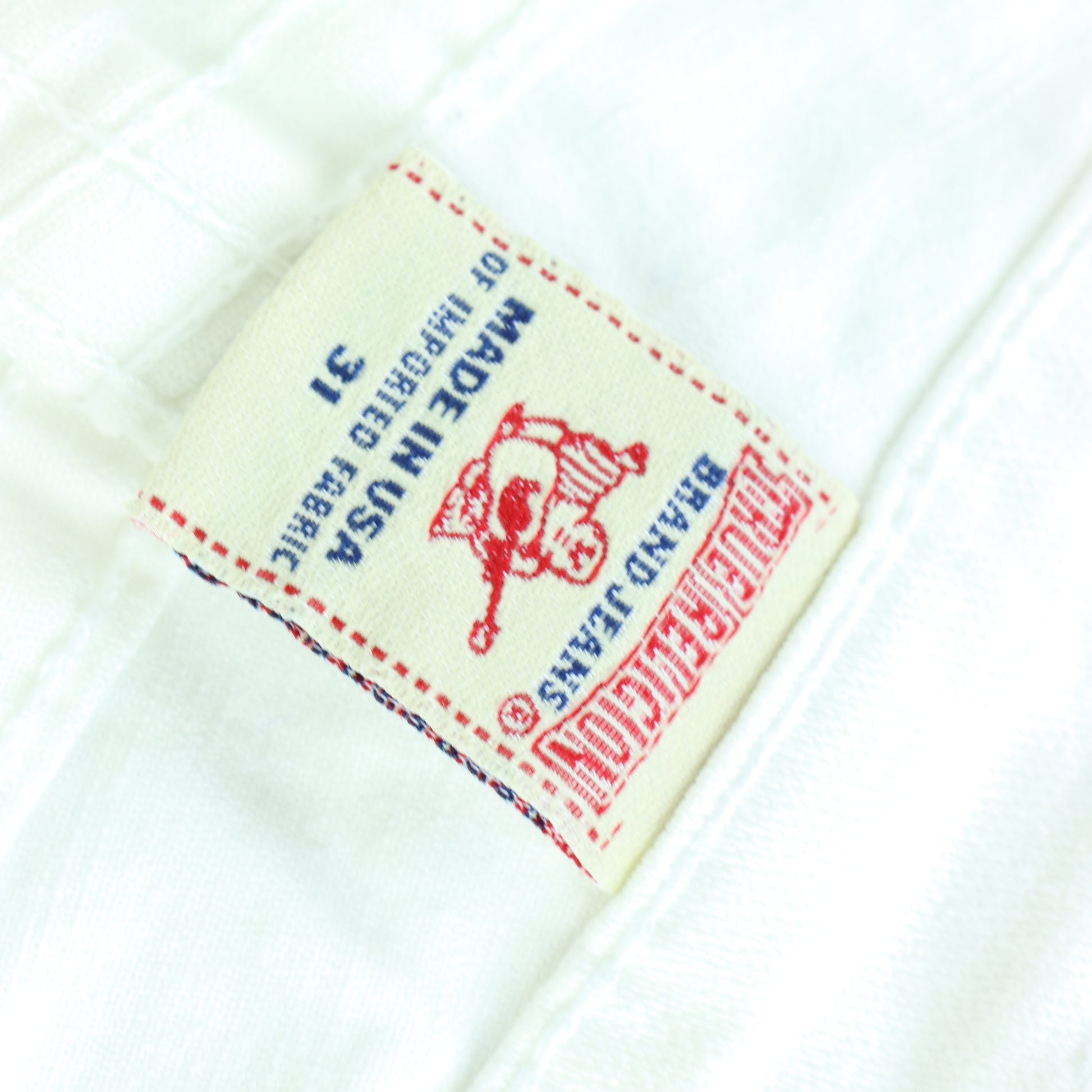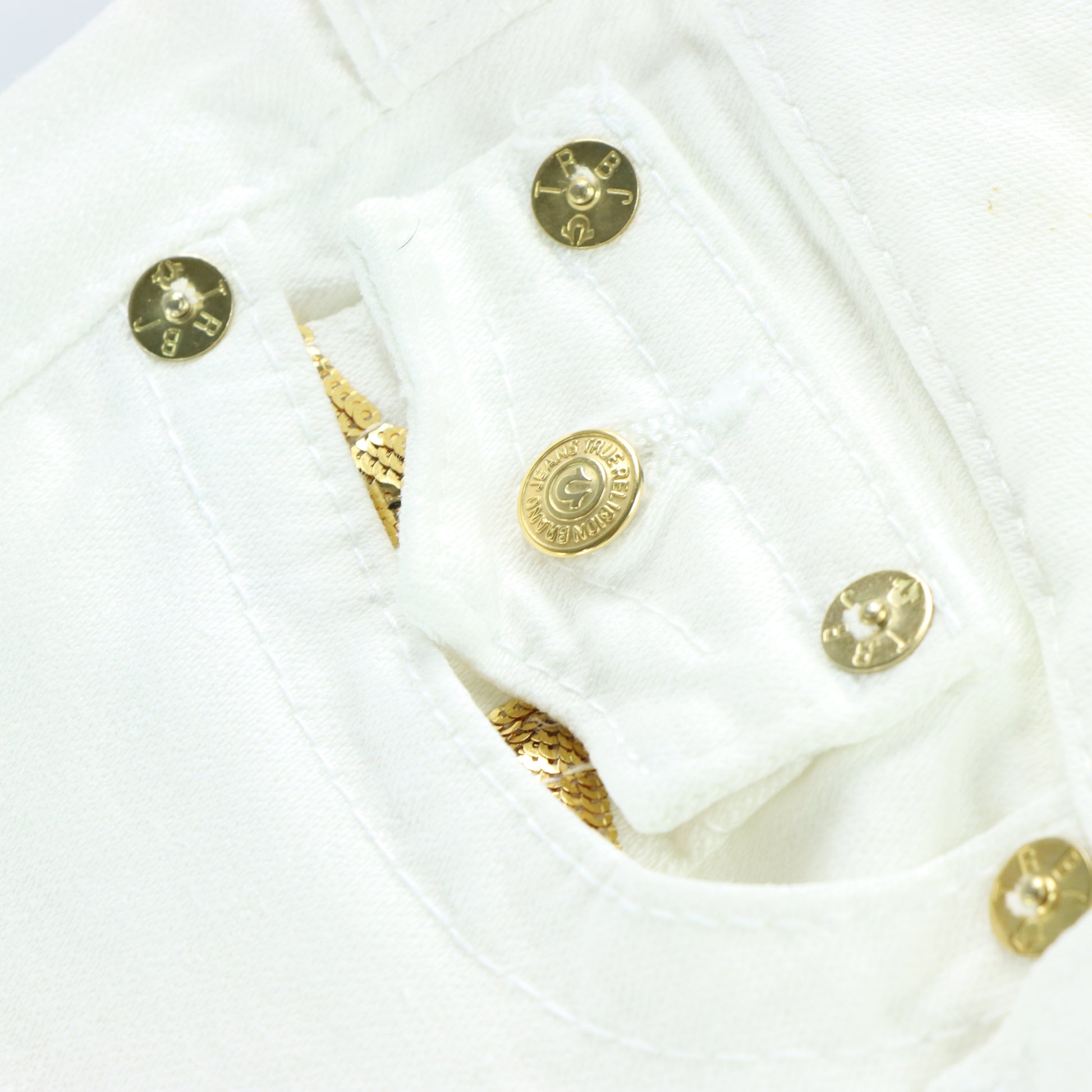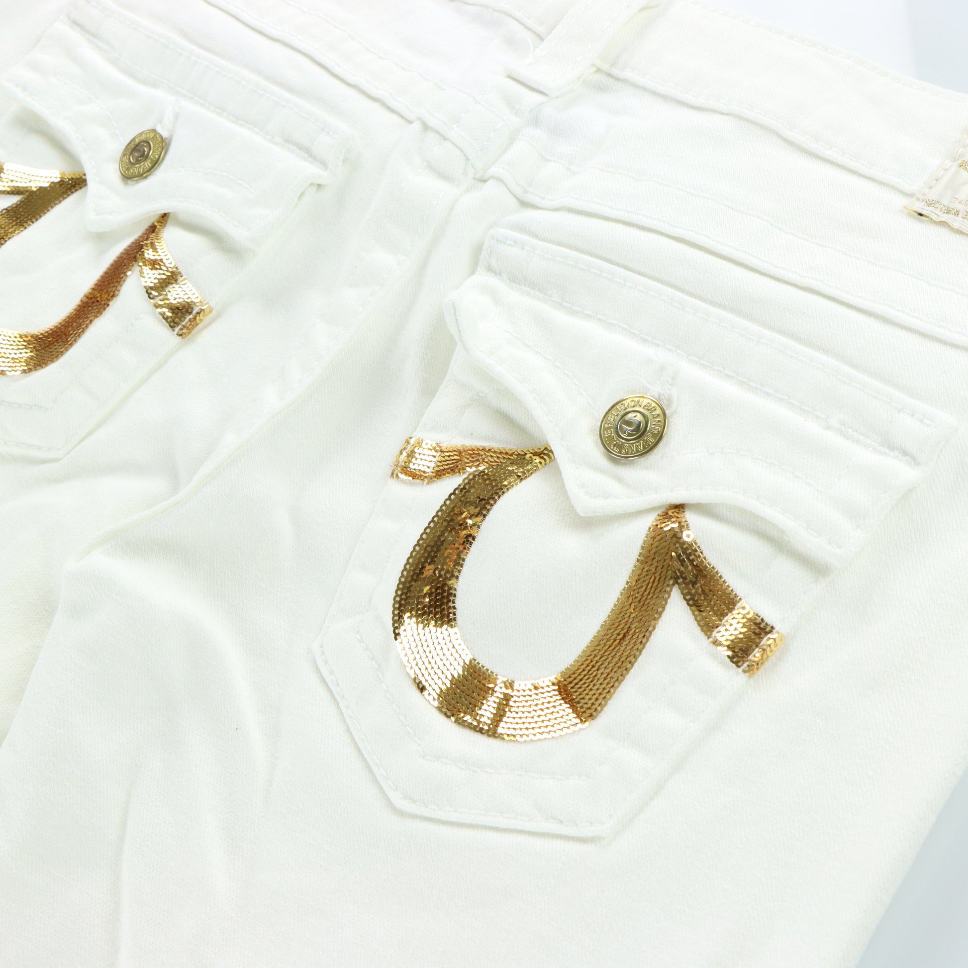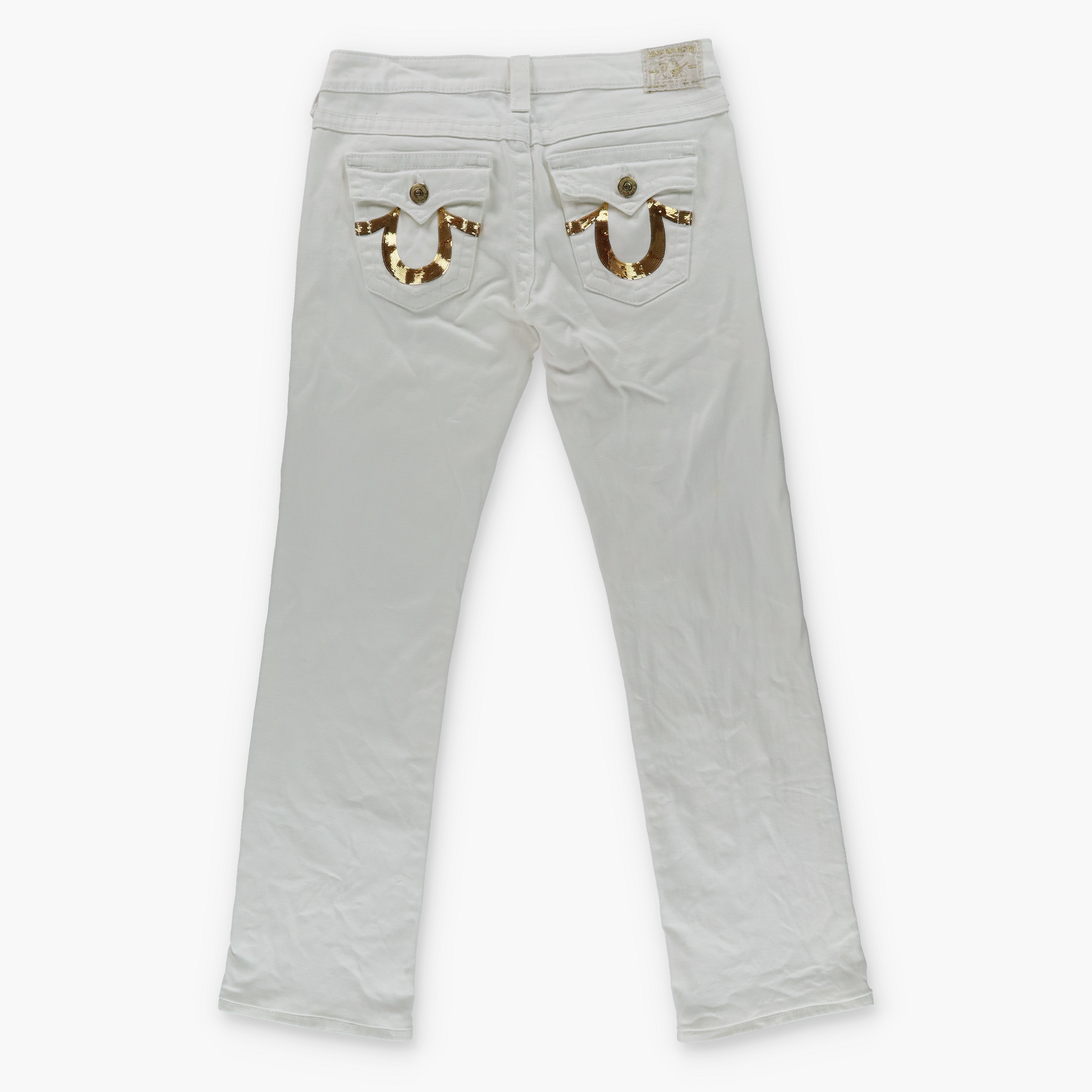 TRUE RELIGION Y2K Gold Sequin Logo USA Made White Jeans (31)