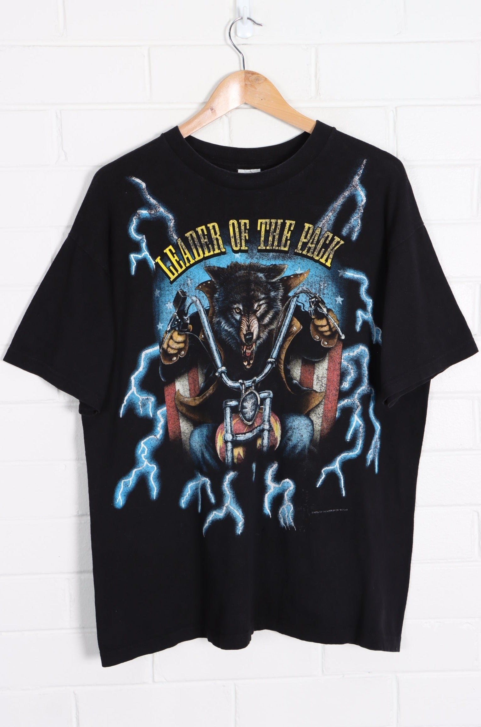 USA THUNDER "Leader of The Pack" Biker Wolf Front Back T-Shirt (L-XL)