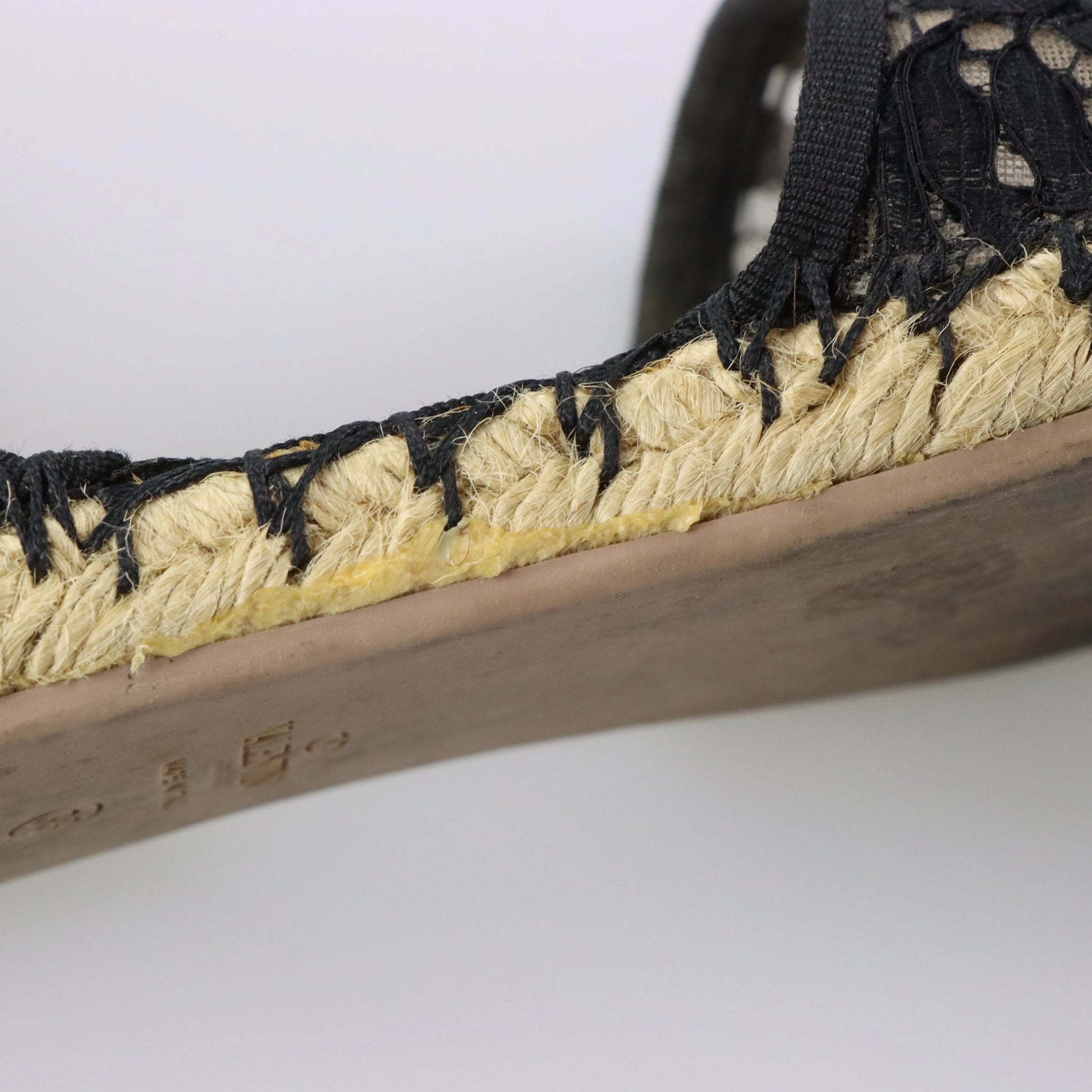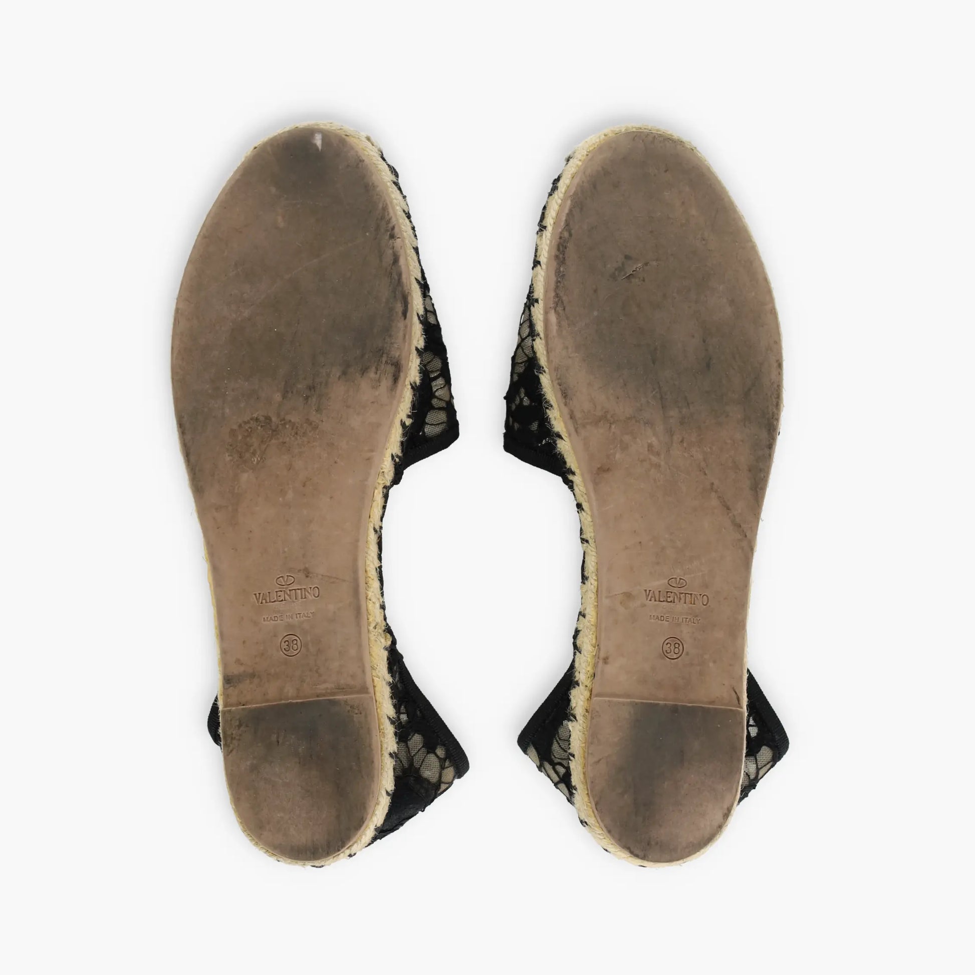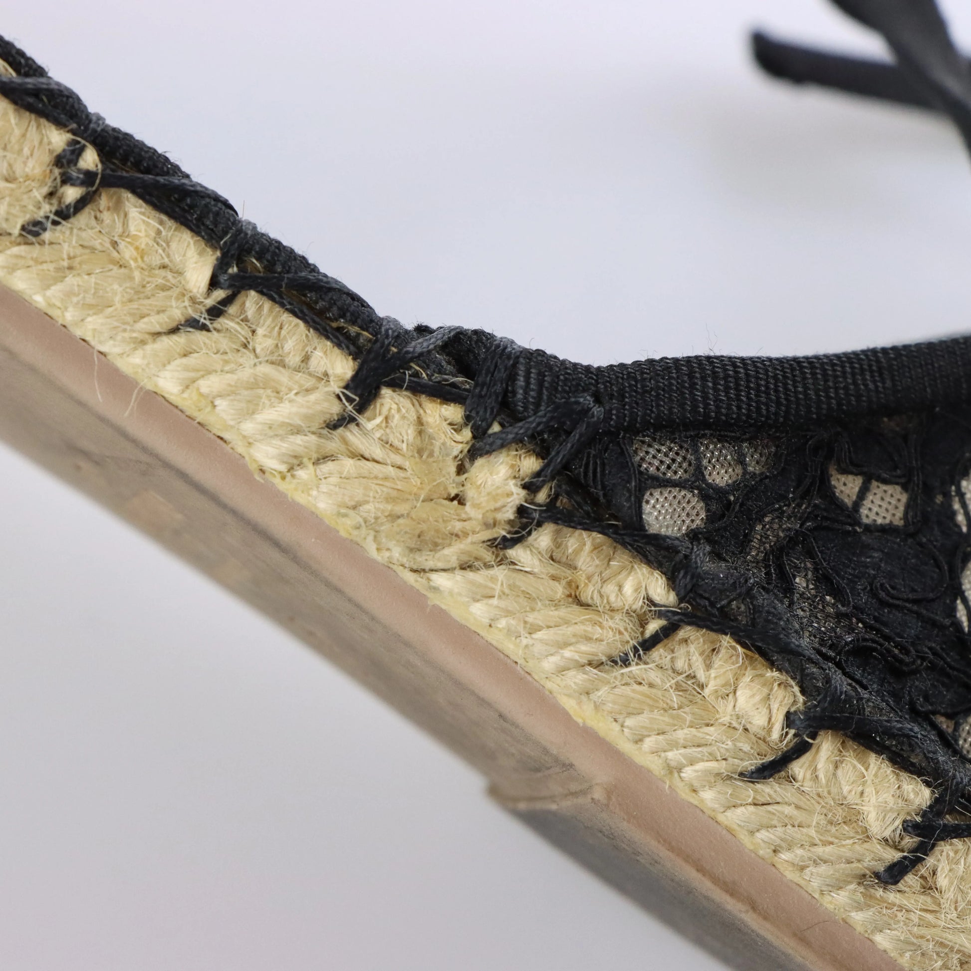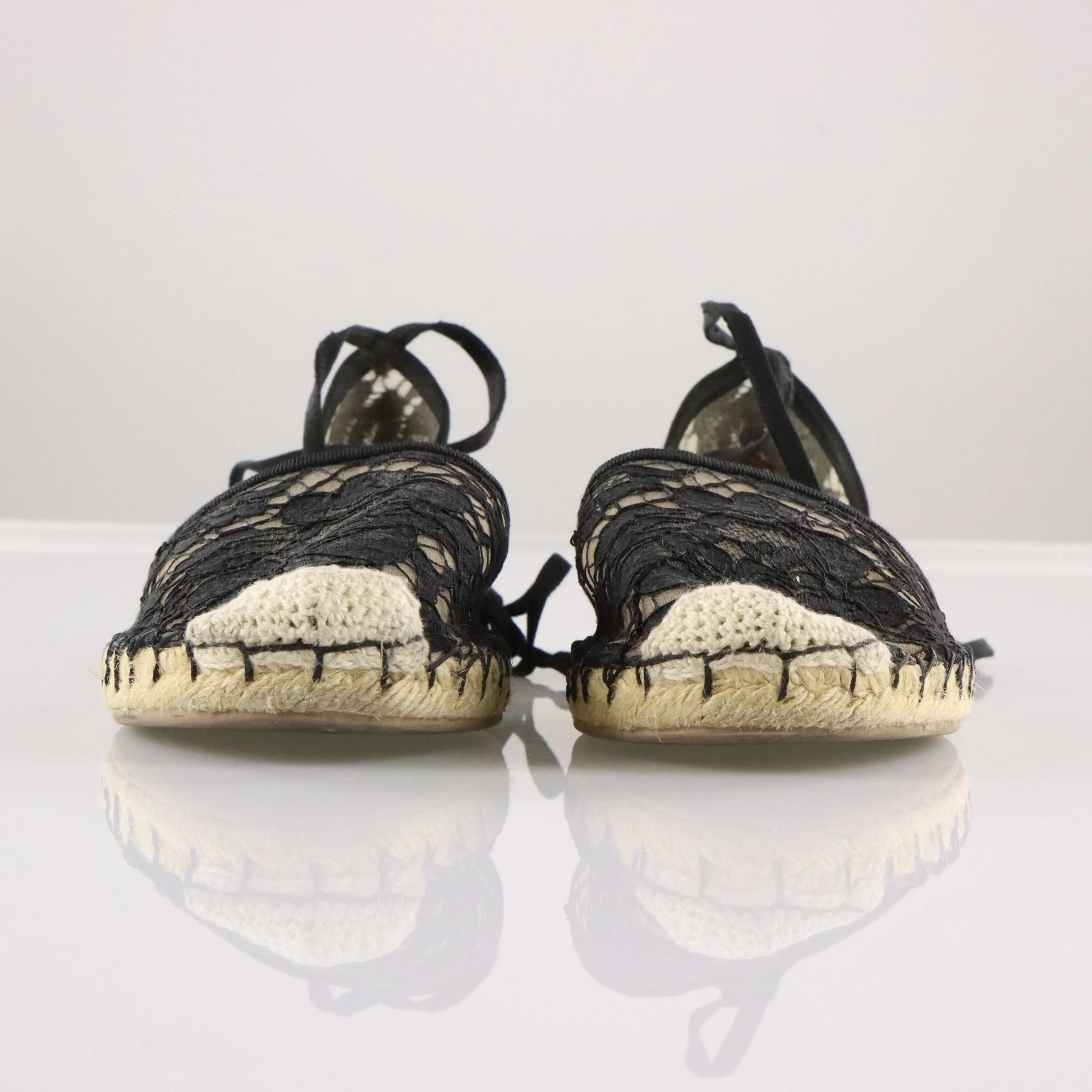 VALENTINO GARAVANI Black Lace & Beige Mesh Ankle Tie Espadrille Flats (38)