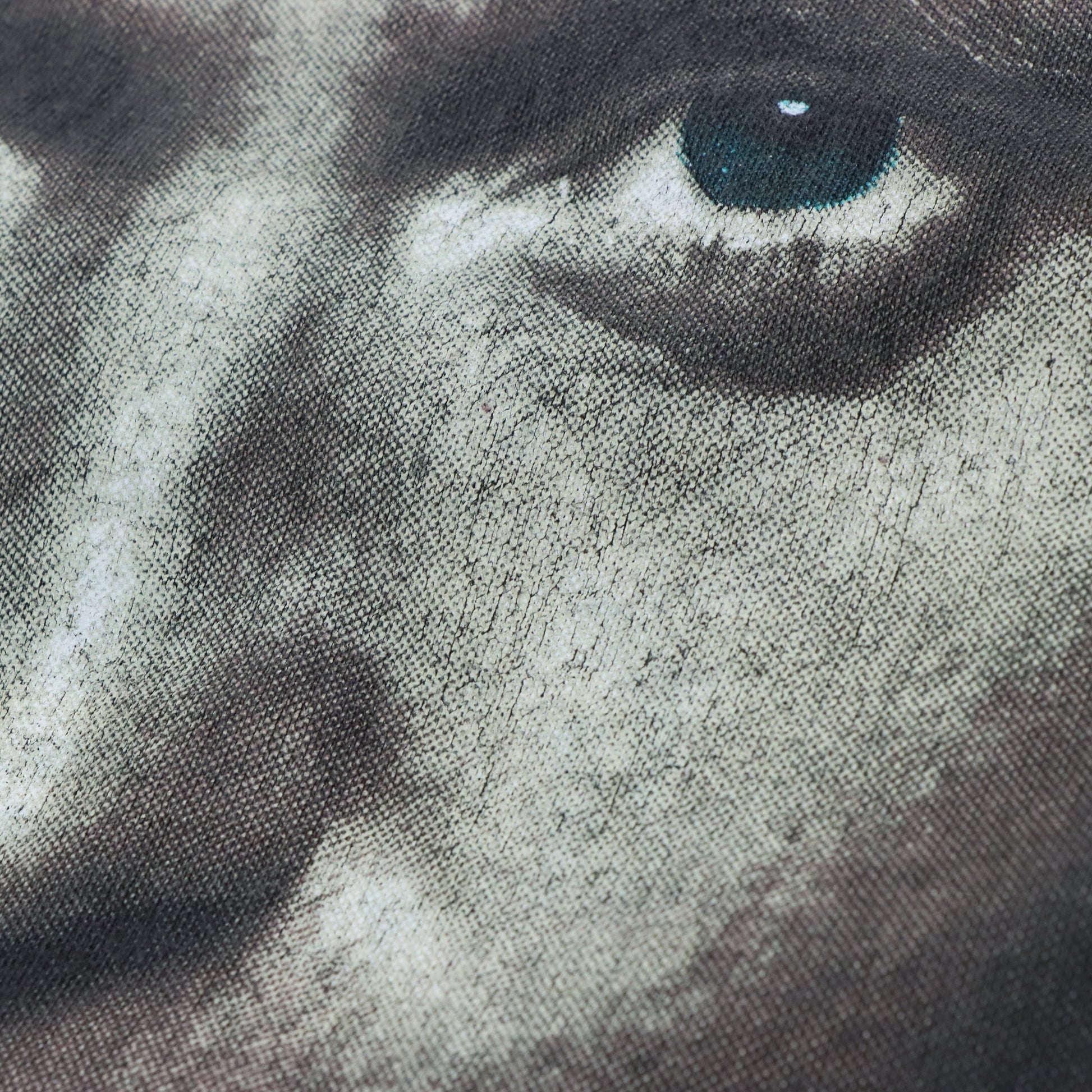 Condition: Good - Cracking in graphic, fading, collar stretching, hole in left sleeve, warping in fabric and some light material wear (please refer to the photos).