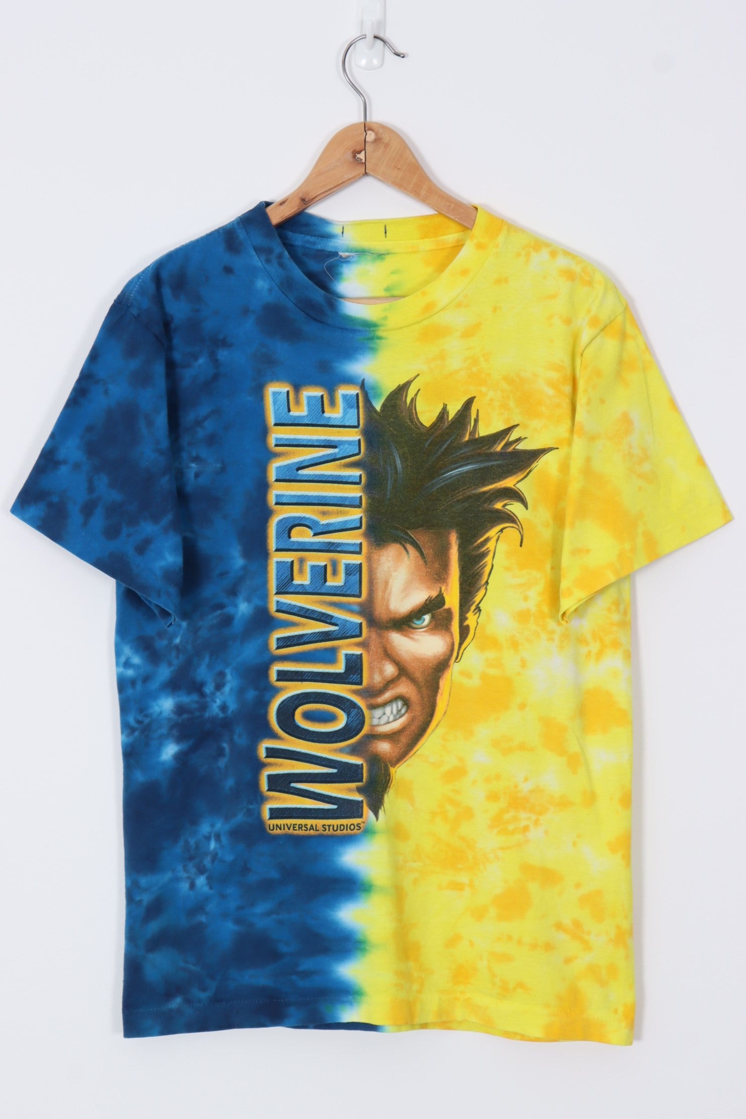 Vintage 1999 MARVEL Wolverine Tie-Dye Yellow & Blue T-Shirt (M)