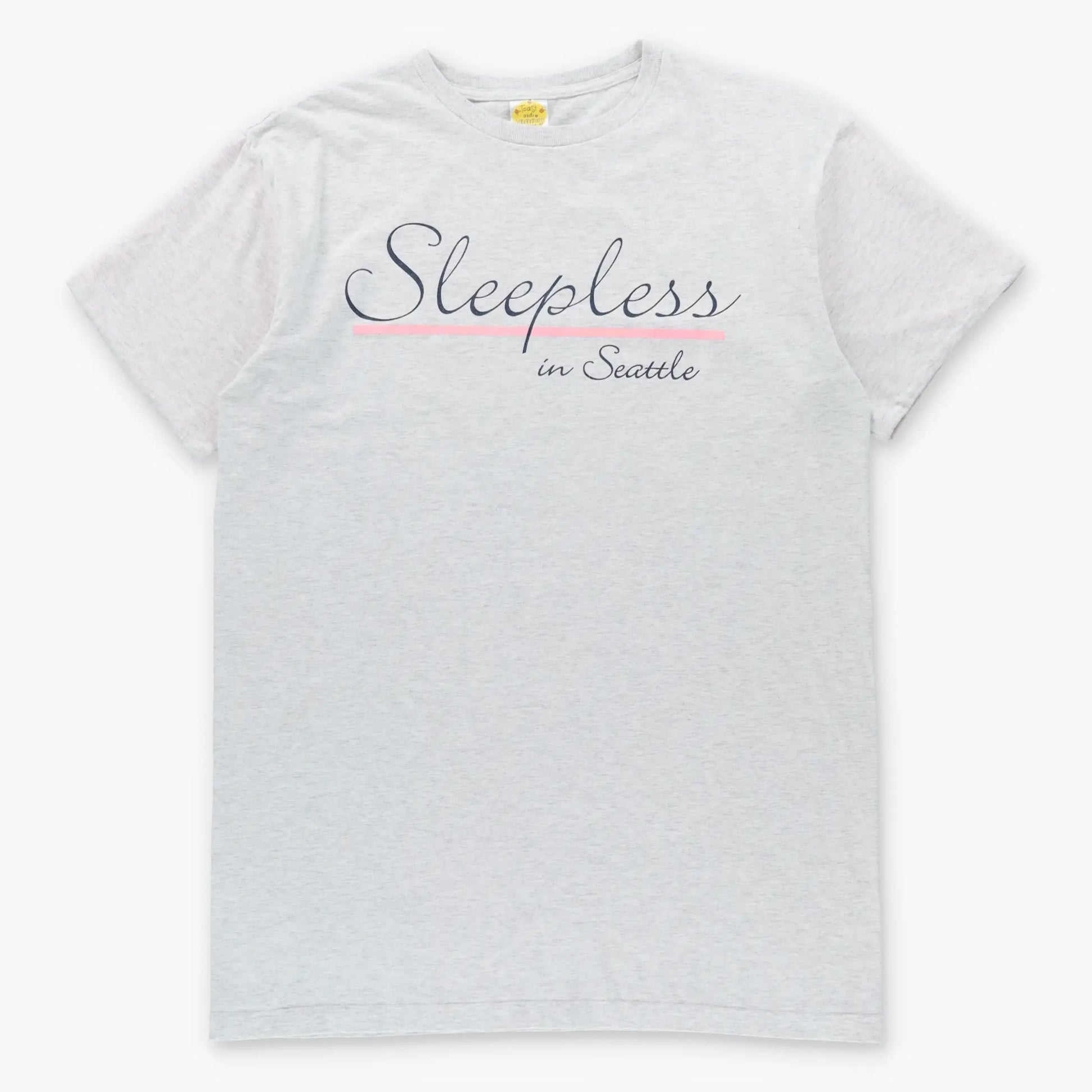 Vintage 90's 'Sleepless In Seattle' Movie Promo Grey & Pink Cuffable Sleep Tee (L)