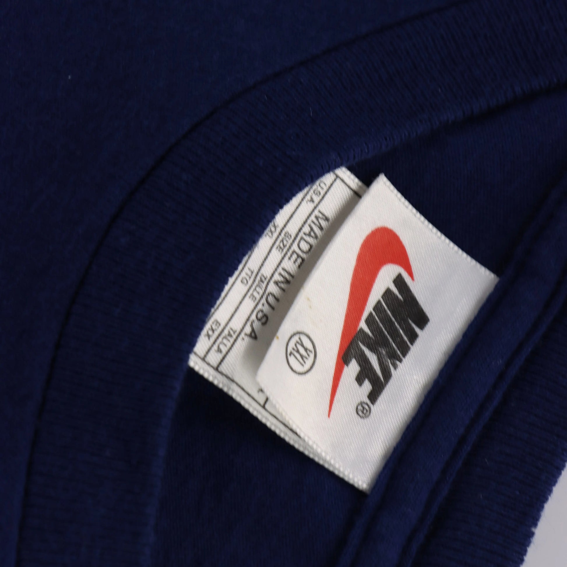 Vintage NIKE Embroidered Rectangular Centre Swoosh Logo Navy USA Made T-Shirt (XXL)
