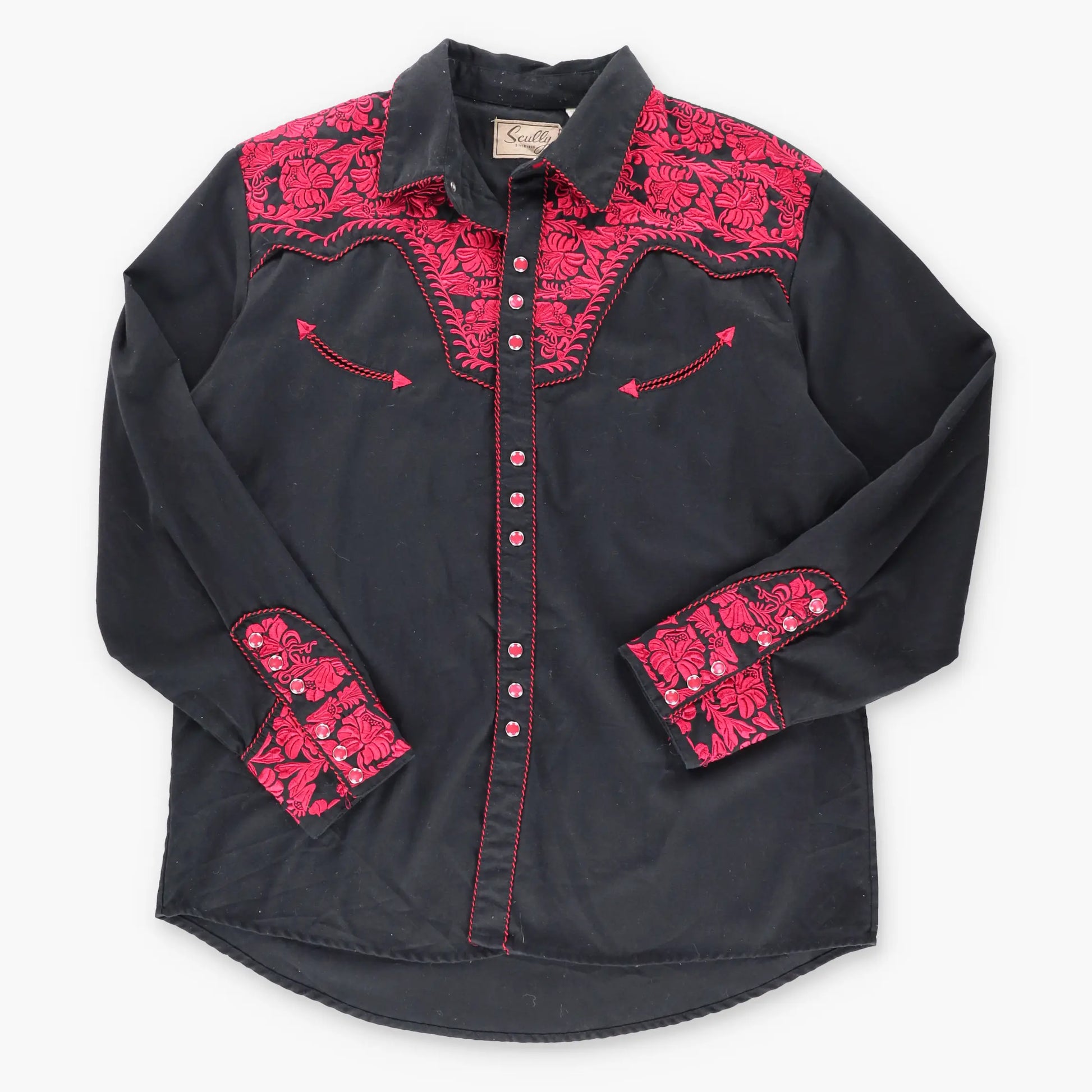 Vintage SCULLY Western Snap Button Red & Black Embroidered Long Sleeve Shirt (XL)