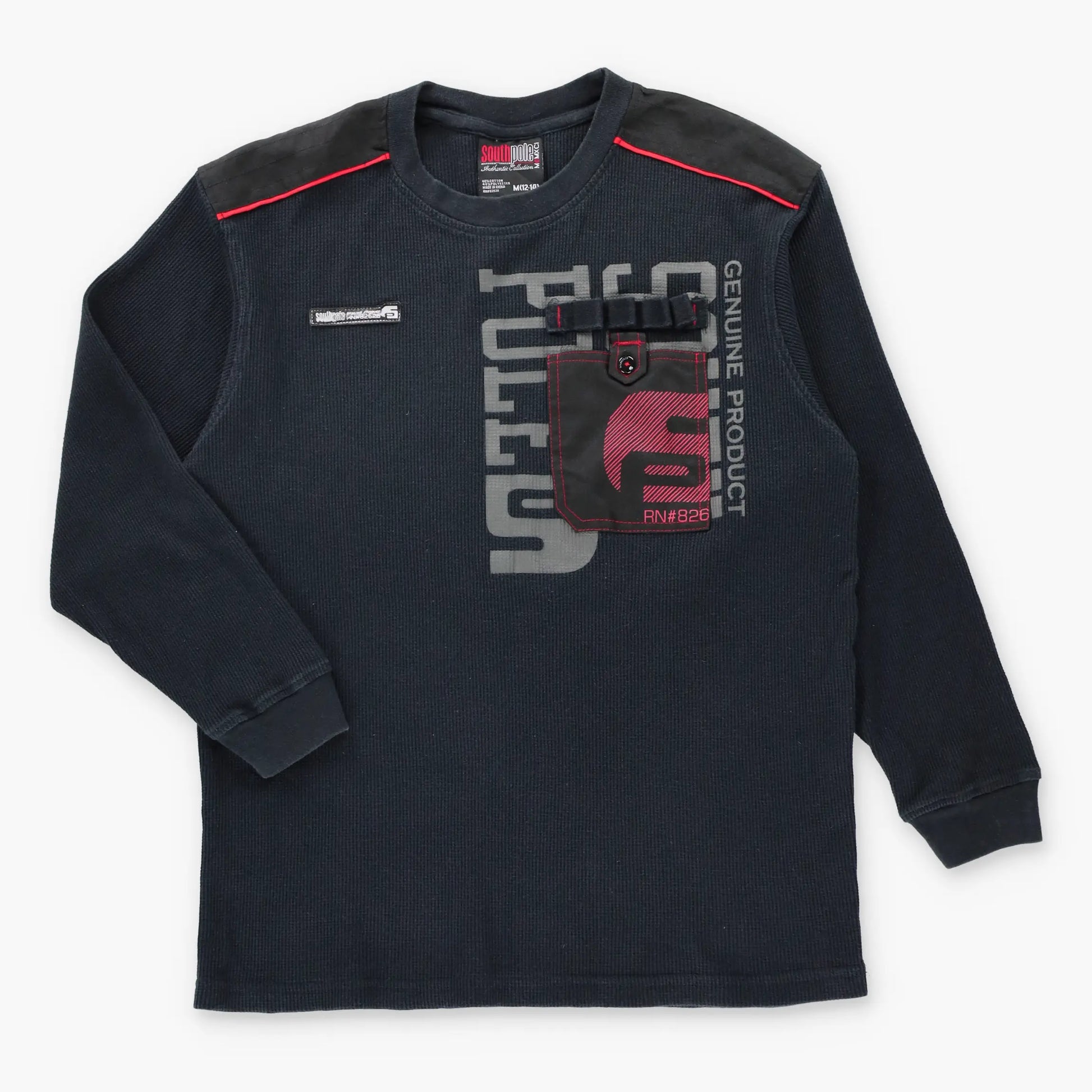 Vintage SOUTHPOLE Front Pocket Y2K Style Waffle Knit Long Sleeve Thermal Tee (M)
