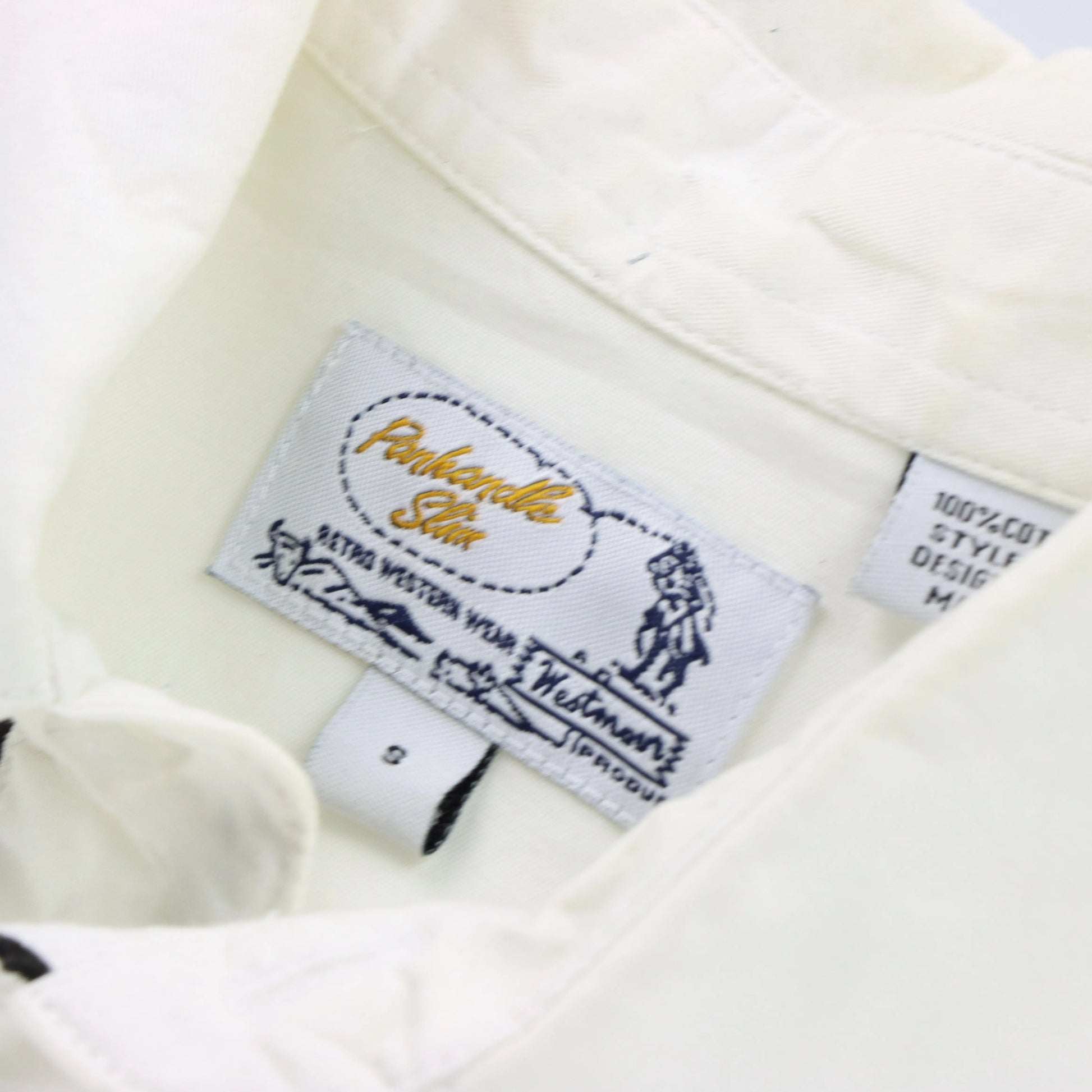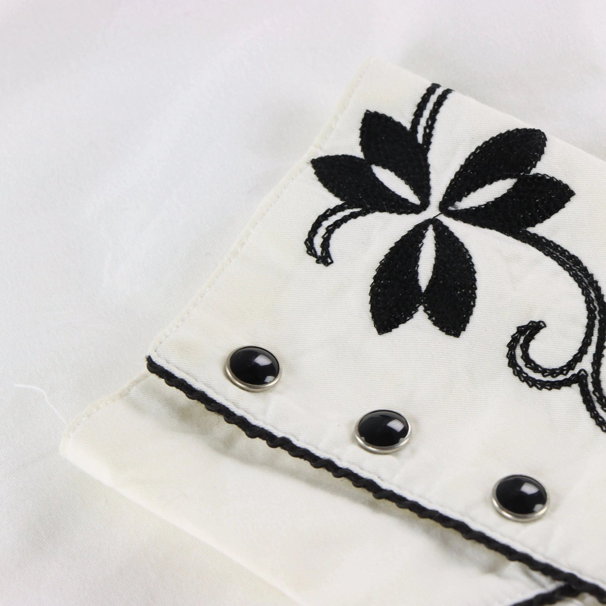 Vintage PANHANDLE Embroidered Floral White & Black Long Sleeve Western Shirt (S)