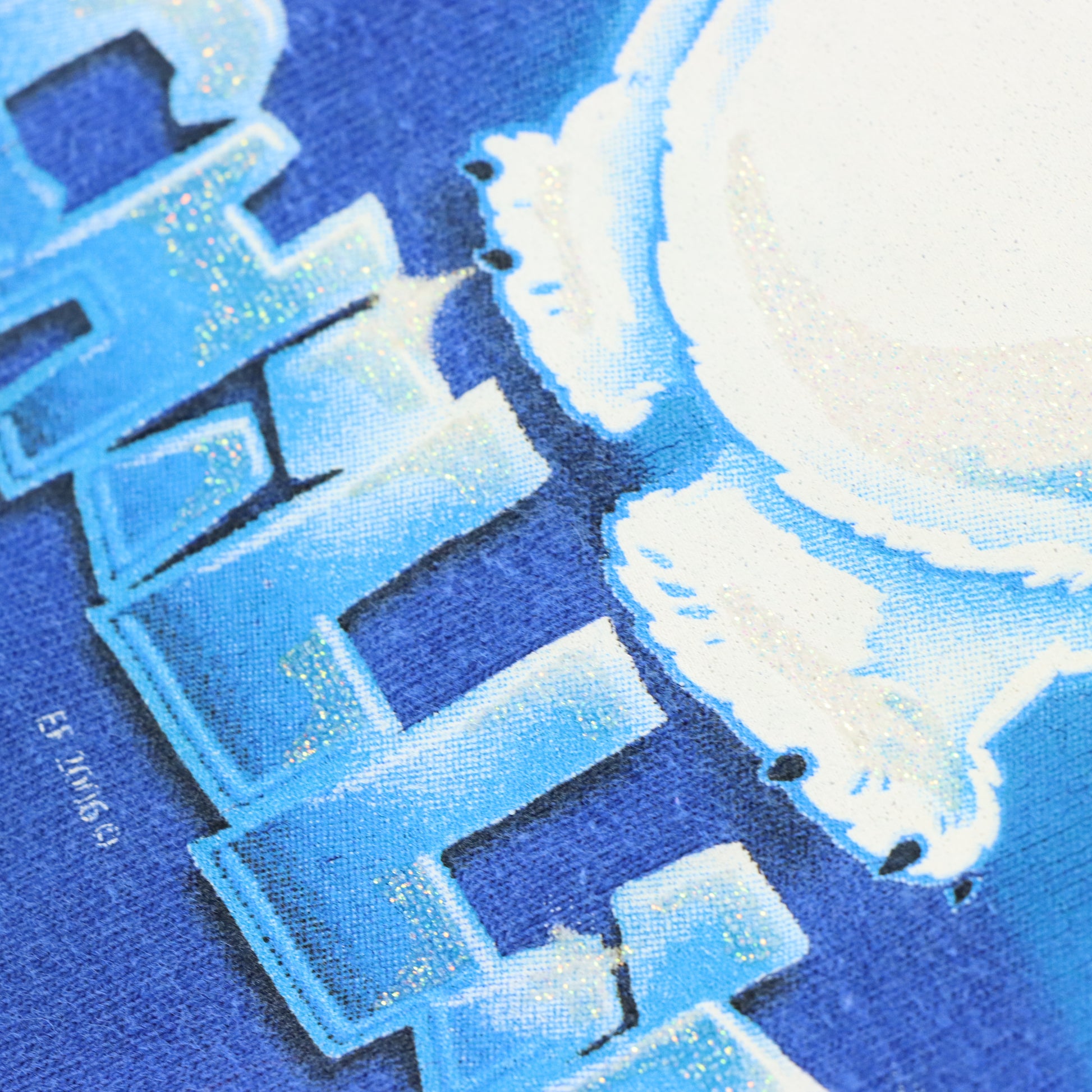 Y2K 'Chillin' Polar Bear Glitter Print USA Made Blue Tee (XXL)