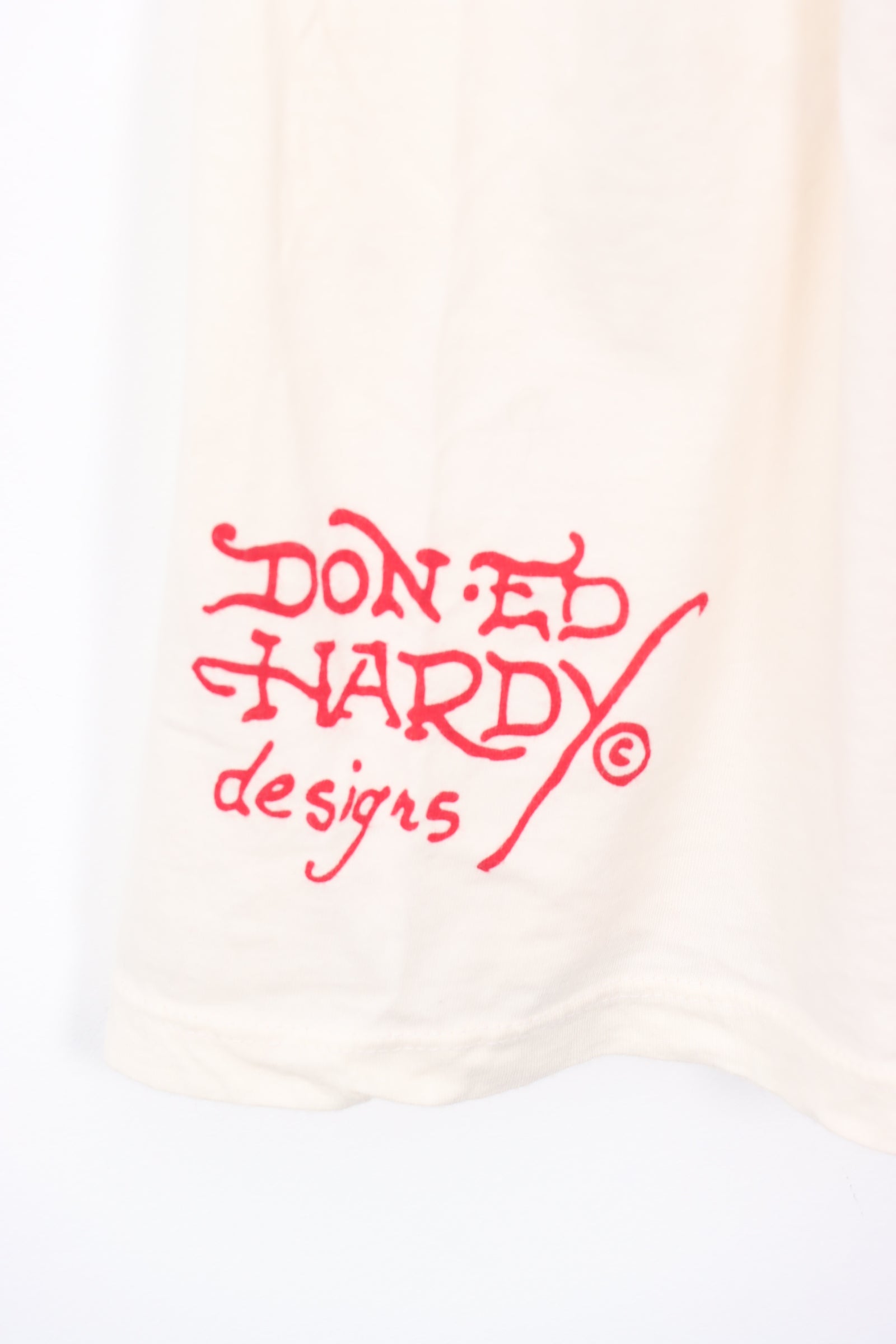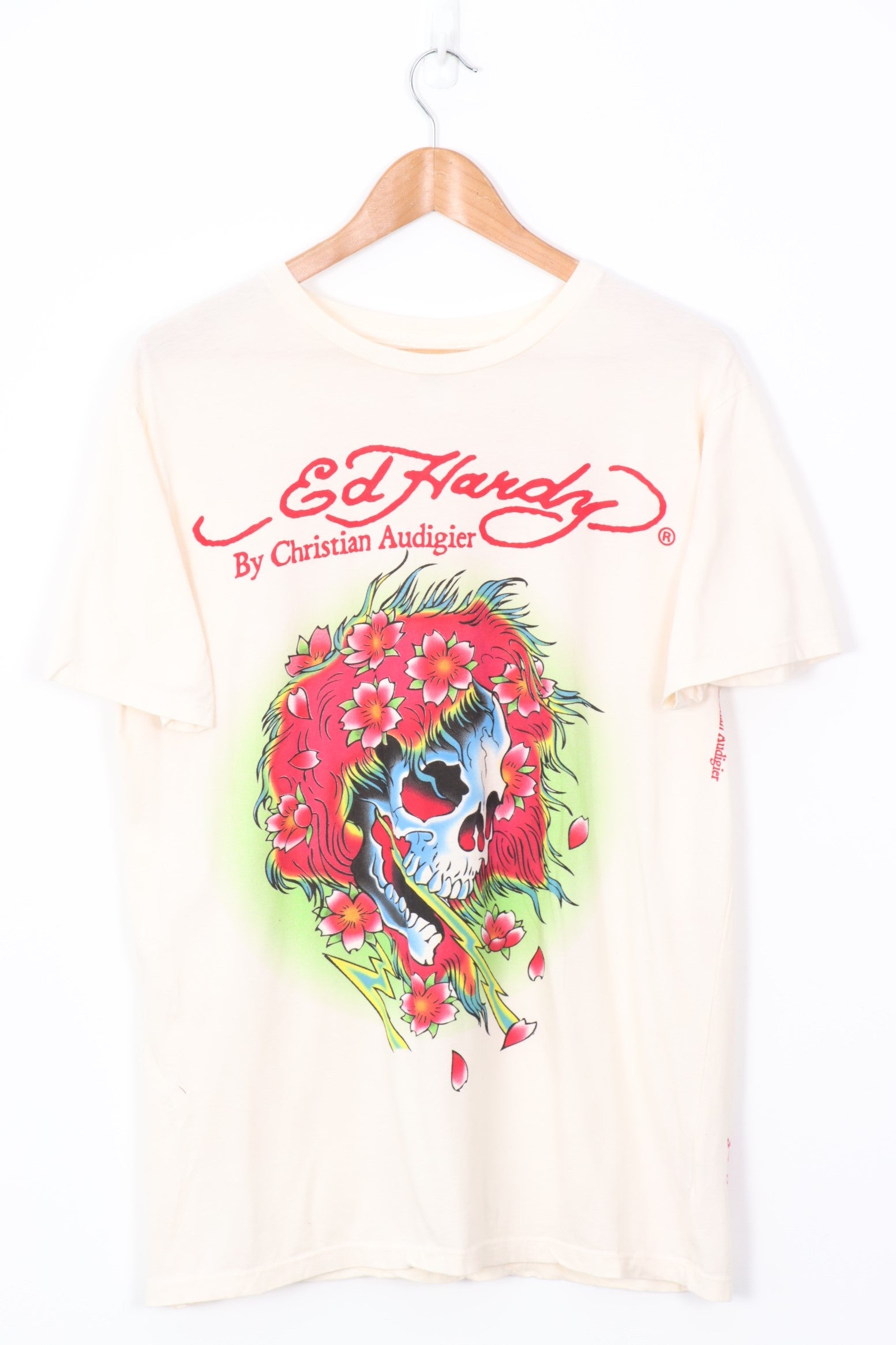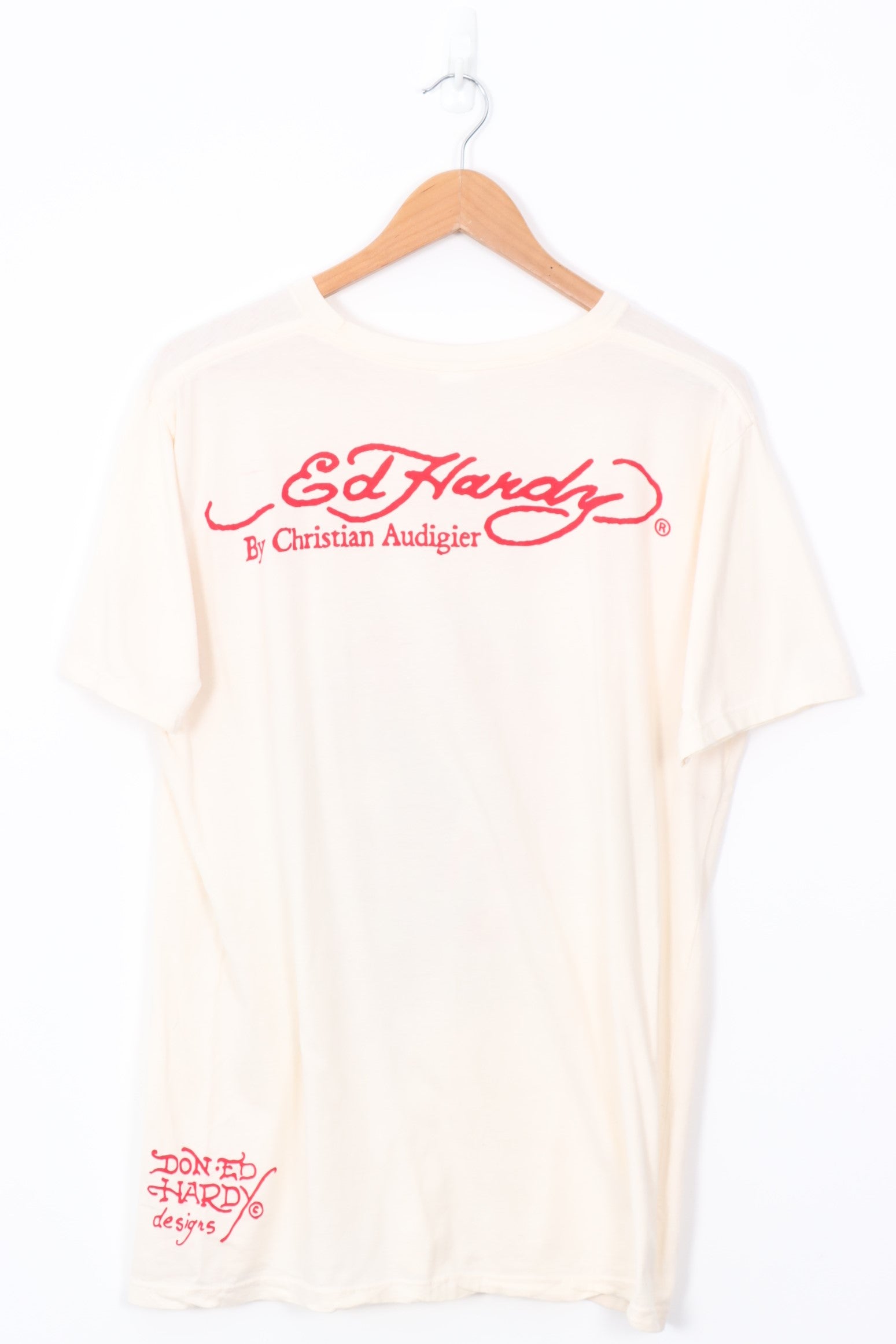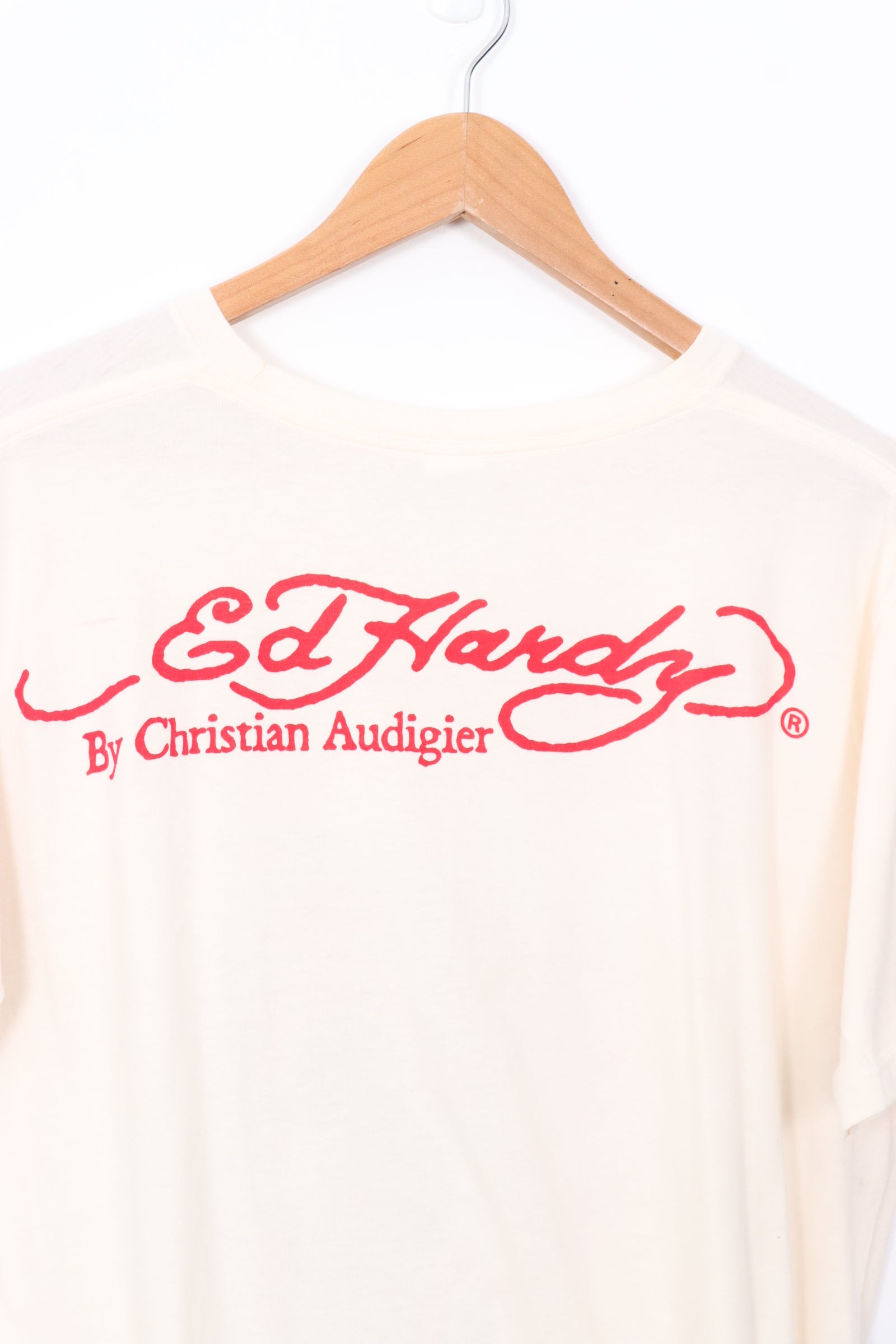 Y2K ED HARDY Skull Red & Cream Christian Audigier Tee (L)